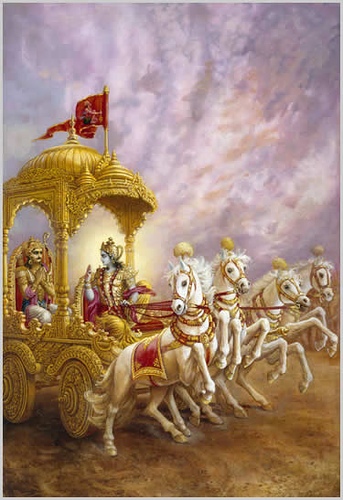 The Bhagavad Gita is being showed as holy book of Hinduism. It was written thousands of years ago. It has teachings said to be given by LORD Krishna (an incarnation whom many Hindus believe to be the god Vishnu in human form.) In the book, Krishna is talking to Arjuna, an archer, before the kurukshetra war begins. Krishna tells Arjuna that he must perform his duty (called dharma) for his caste, and go to fight. Arjuna hesitates because he is fighting his friends, but in the end he listens to Krishna. He will not be led into the underworld for ever for his sins because he will now be reincarnated.